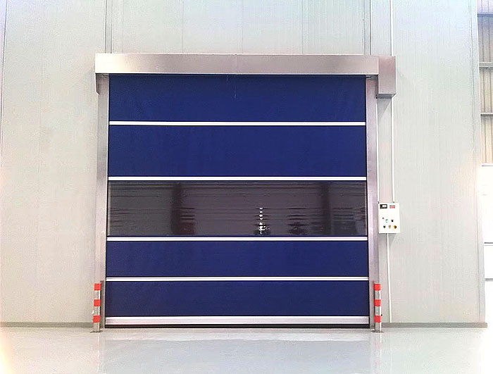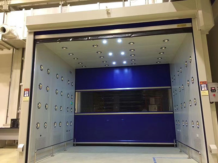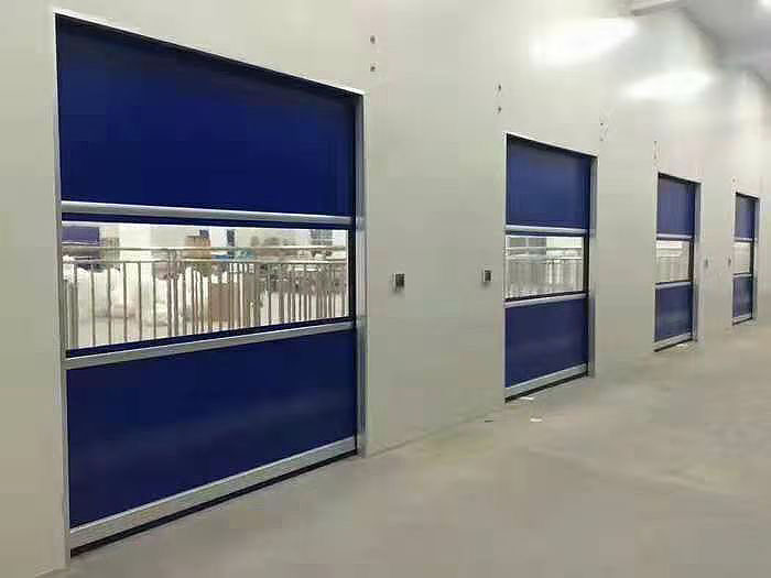 快速門是由開門傳感器提供觸發(fā)信號給控制系統(tǒng),控制系統(tǒng)根據(jù)快速卷門的當前位置發(fā)出指令給變頻器,啟動驅(qū)動電機使門簾快速上升,車輛行人通過后門簾自動下降,關(guān)閉通道,直到下一個開門信號再次打開??焖倬黹T升降速度非??欤荒芟皲撝凭黹l門一樣直接啟動停止,一般需要變頻器來控制電機的車速。上升時越快越好,快到位時(20cm左右)需要有一個減速緩沖停止過程,以防止撞擊軌道,防止夾人,降低噪音,這也是衡量快速卷門性能好壞的一個標準。